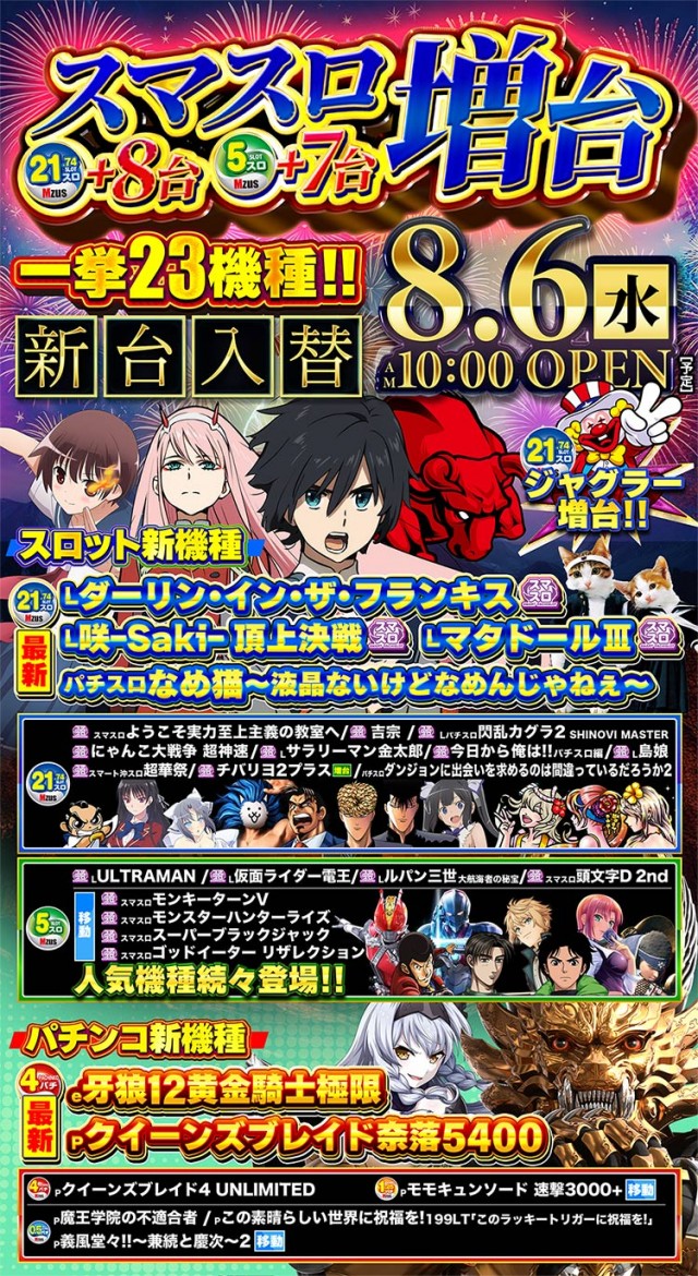 😁6日(水) 新台入替〜スマスロ増台 & えりさん来店〜😊