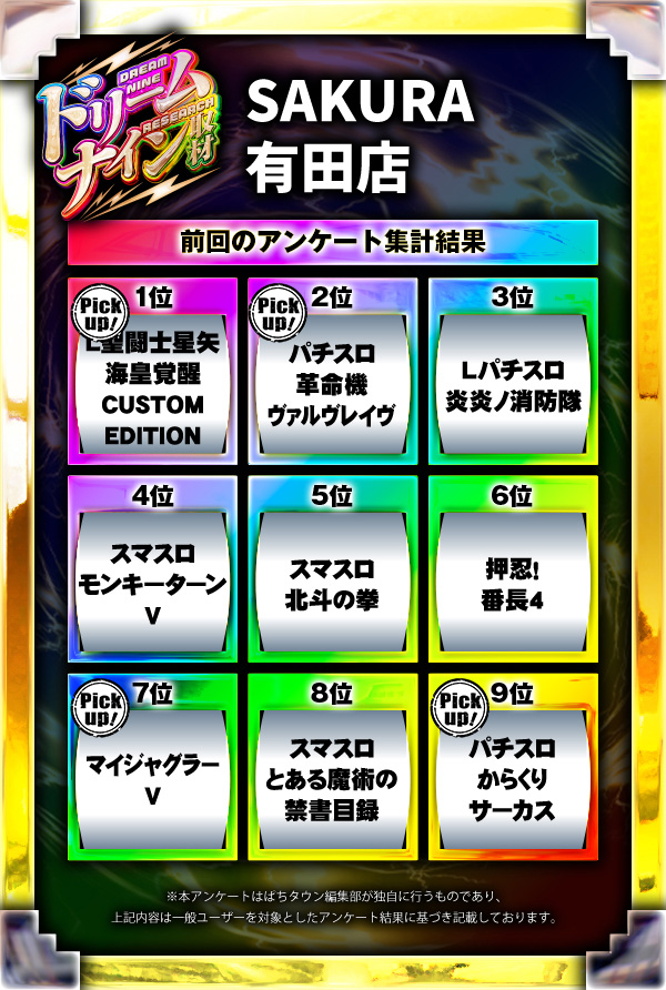 ※差枚数順に掲載しています