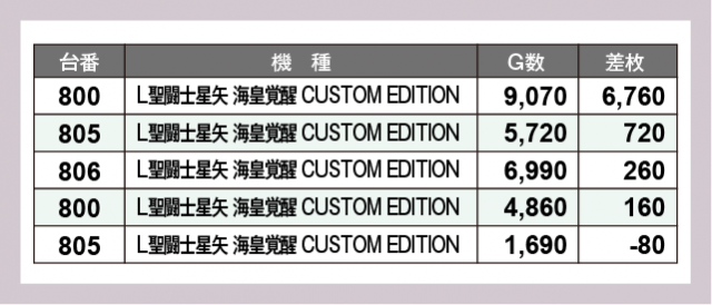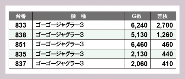 ※差枚数順に掲載しています