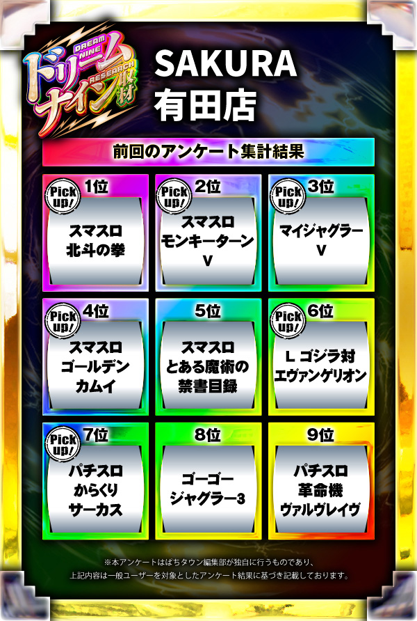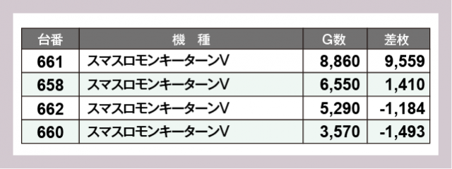 ※差枚数順に掲載しています