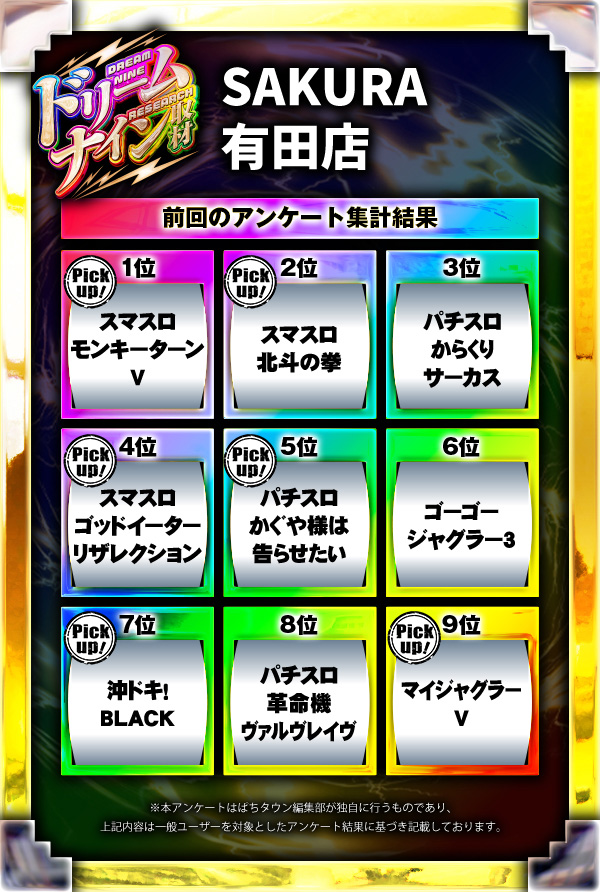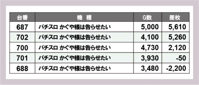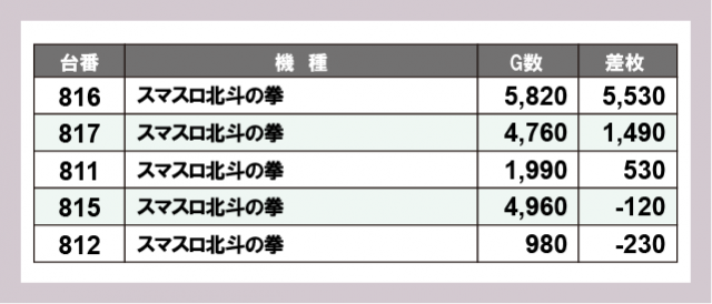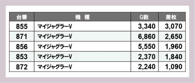 ※差枚数順に掲載しています
