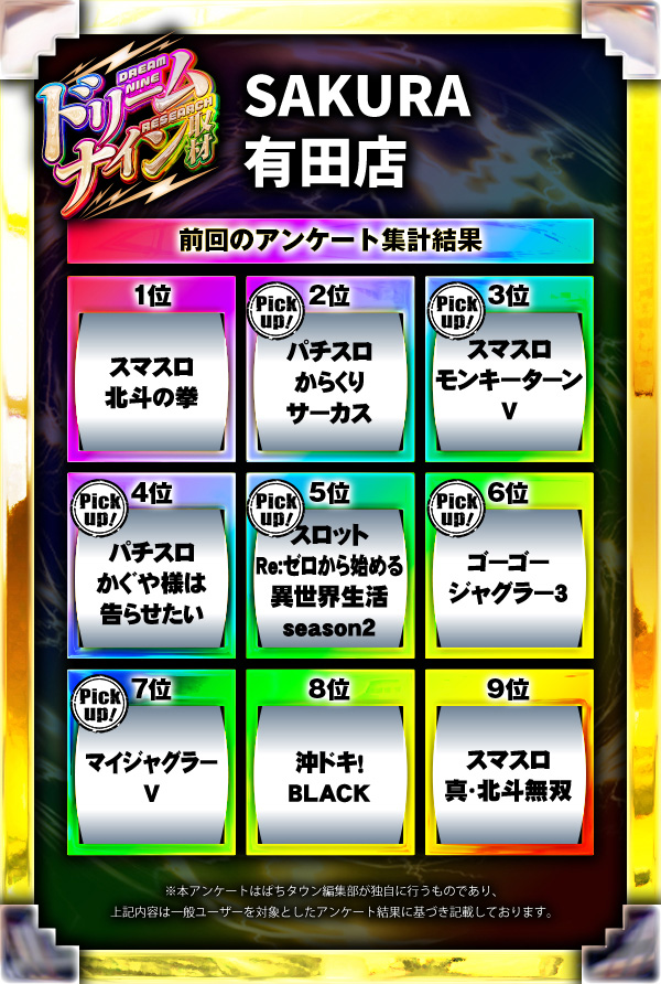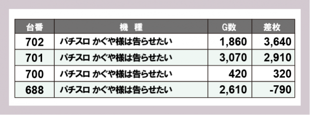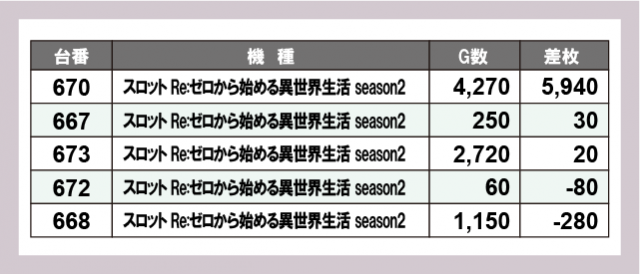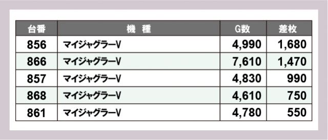 ※差枚数順に掲載しています