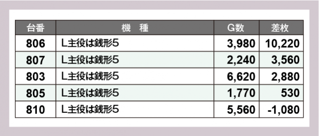 ※差枚数順に掲載しています