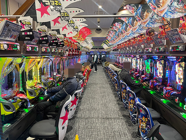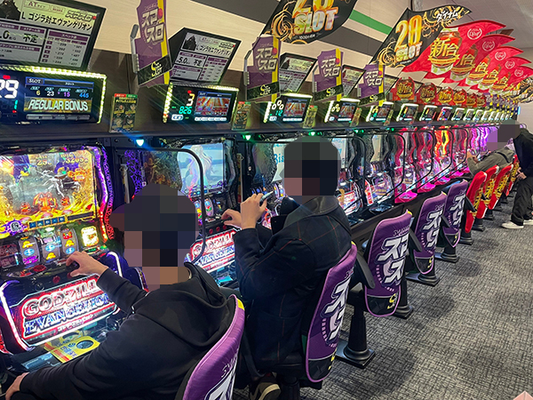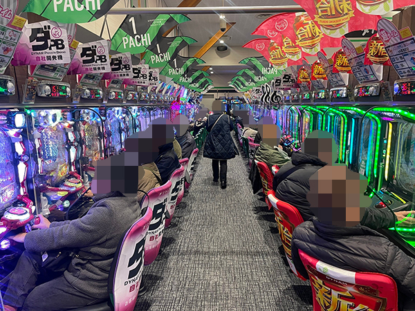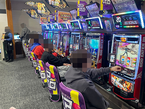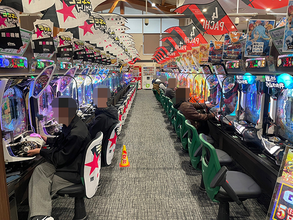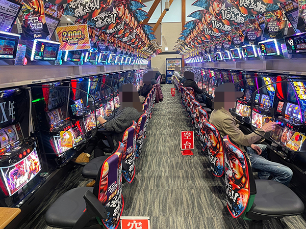100円/90玉パチンコの支持も厚い。「eA夏色日記GO」といった自社開発機で遊技を楽しむプレイヤーたちの姿が印象に残っている。