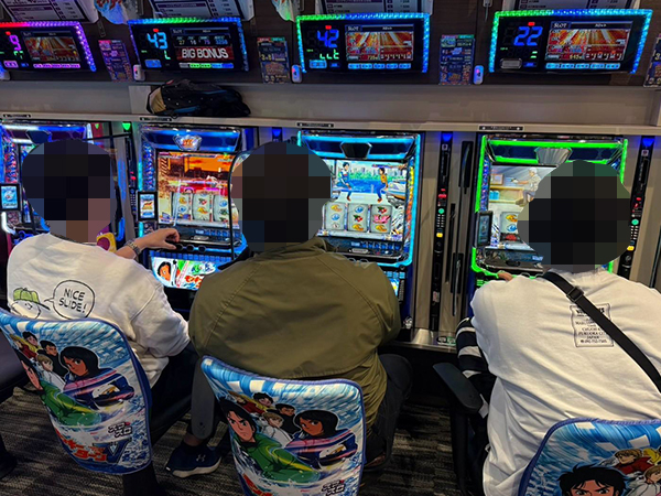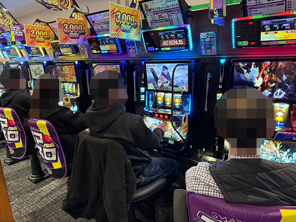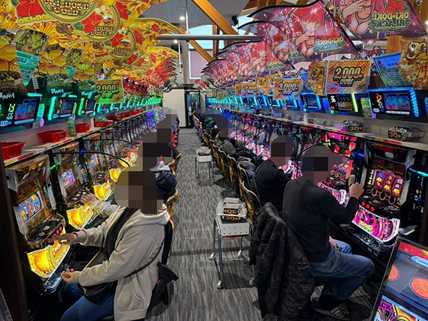 取材時は既に多くのプレイヤーであふれており、パチンコ・パチスロを問わず楽しげな表情でいっぱいだった。