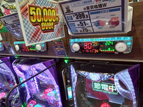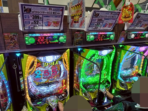 14時ごろの4円パチンコをチェックすると「eフィーバーからくりサーカス2 魔王ver.」や「e 東京喰種」が好評の様子。プレイヤーの満足そうな表情から、充実した時間を過ごしていたことがうかがえる。