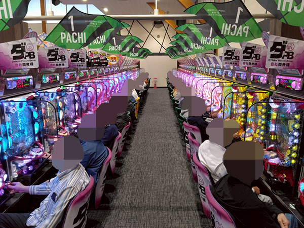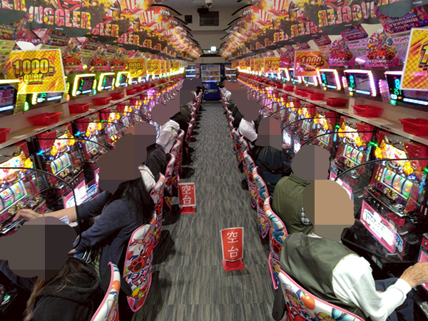 取材時は多くのプレイヤーが来店。パチンコ・パチスロともに、様々な機種が支持を得ていた。