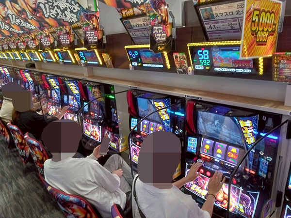 取材時は既に多くのプレイヤーであふれており、パチンコ・パチスロを問わず楽しげな表情でいっぱいだった。