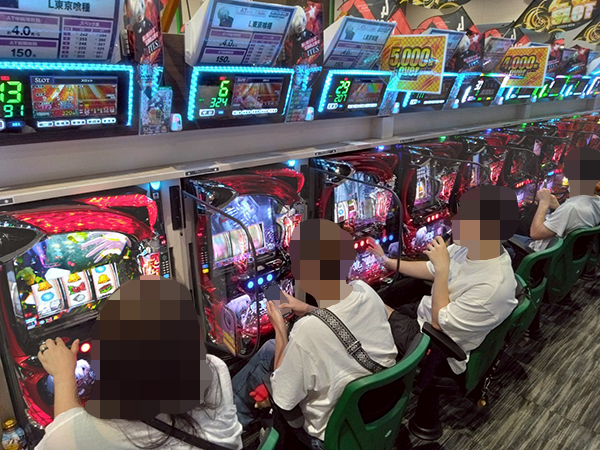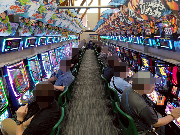取材時は既に多くのプレイヤーが集結し、パチンコ・パチスロを問わずにぎやかな状況となっていた。