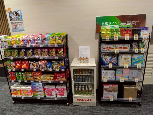 景品コーナーには日用品・お菓子・ドリンク類など多彩なアイテムが揃っており、プレイヤーたちの目を引いていた。