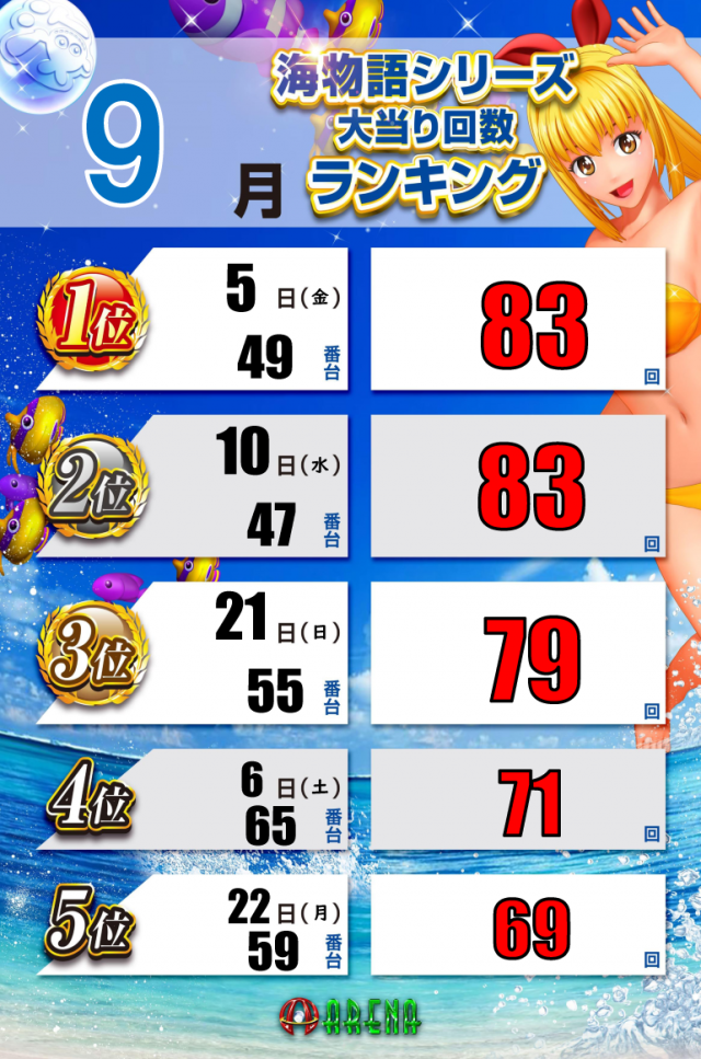 1位 10月15日(水) 2位 10月17日(金) 3位 10月1日(水)