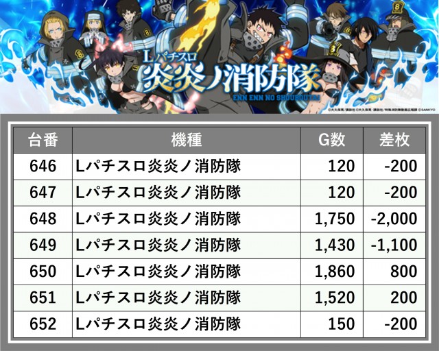 ※台番順に掲載しています