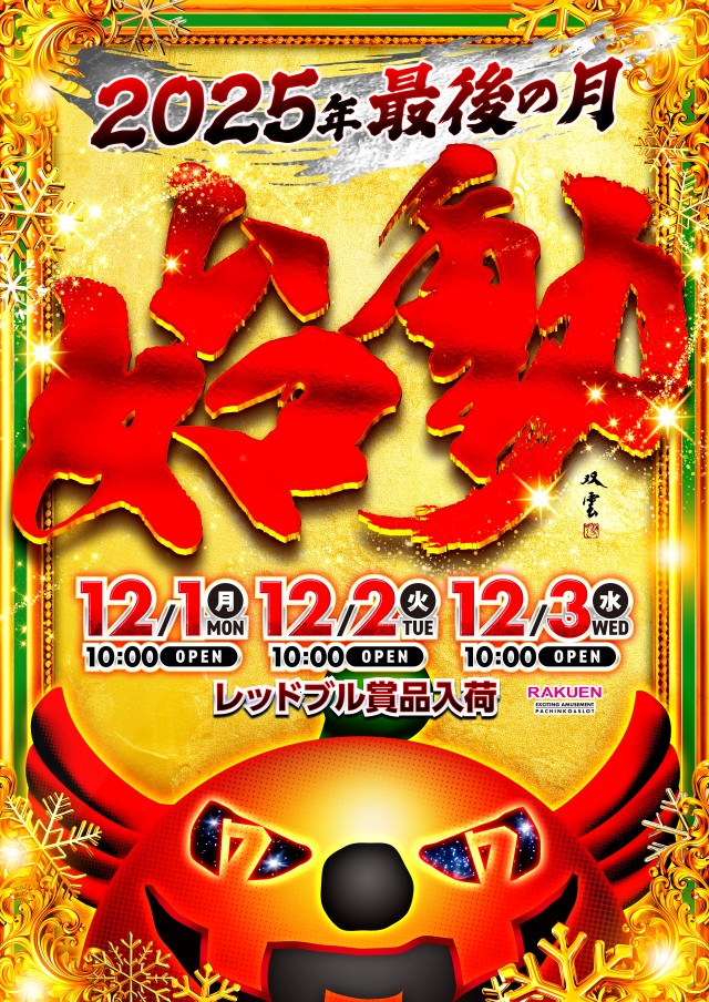 12月1日(月)楽園大宮店❗始動❗全館10時開店ッ✨