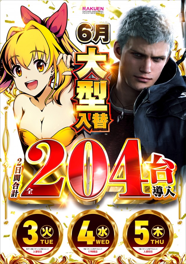 6月5日(木)新台入替初日!全館10時開店ッ🎵