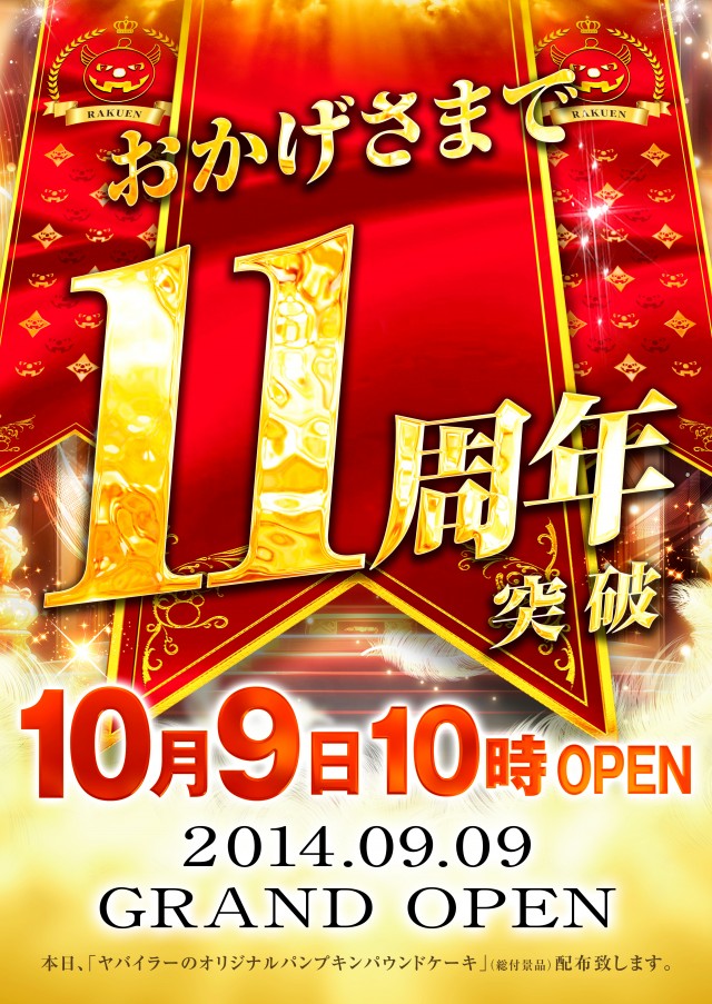 10月9日(木)楽園大宮店ッ❗全館10時開店ッ❗