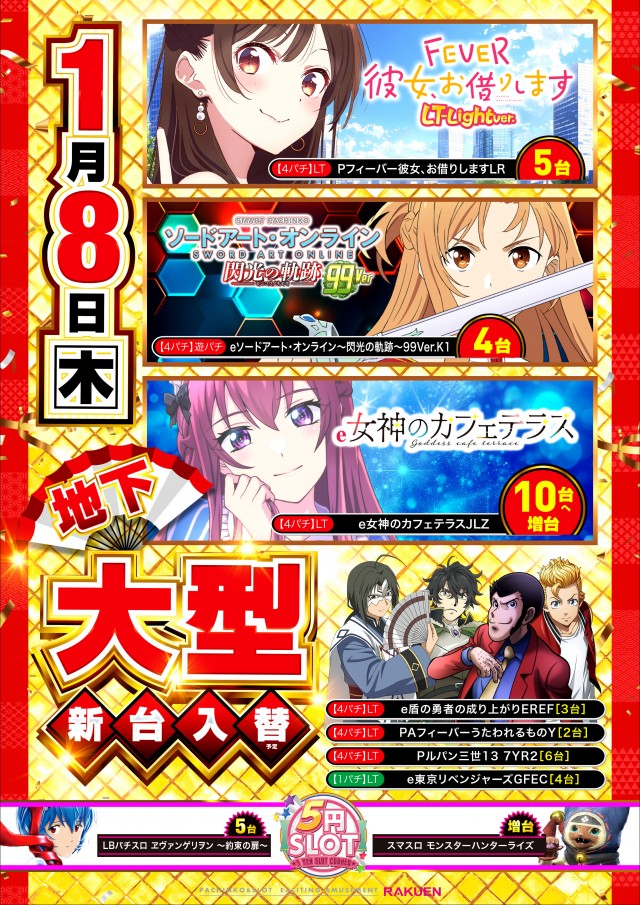 1月8日(木)楽園大宮店ッ❗全館10時開店ッ❗