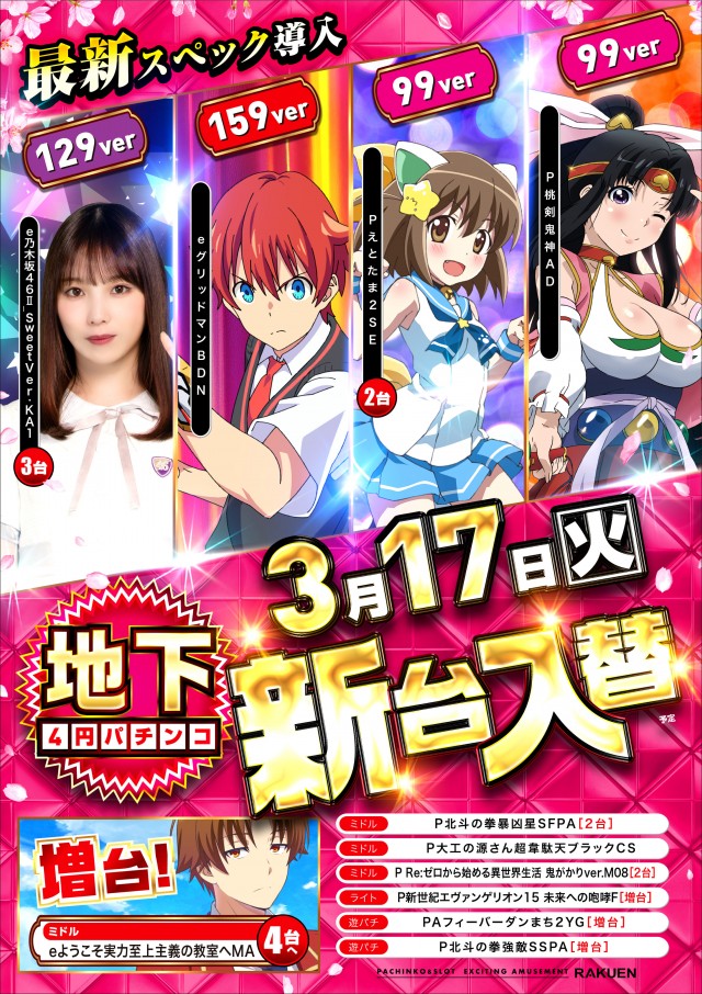 3月17日(火)新台入替初日❗全館10時開店ッ❗