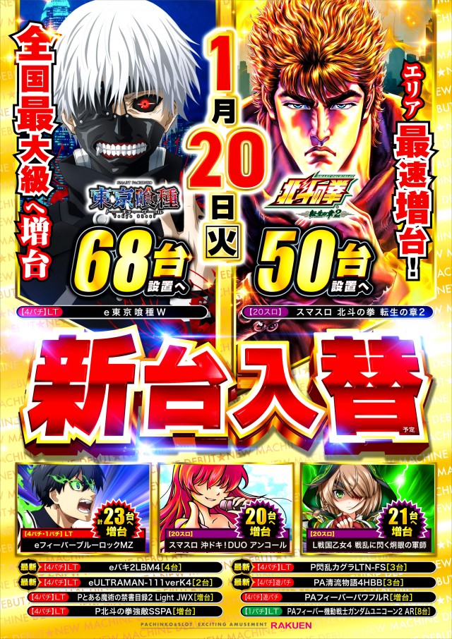 1月20日(火)新台入替初日❗全館10時開店ッ❗