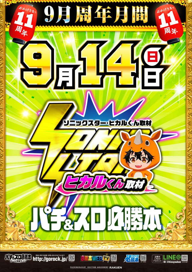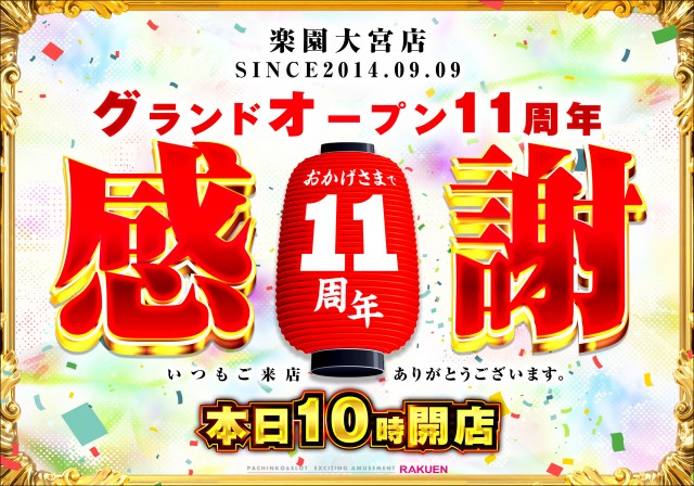 9月14日(日)楽園大宮店ッ❗全館10時開店ッ❗