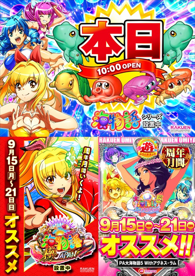 9月15日(月)楽園大宮店ッ❗全館10時開店ッ❗