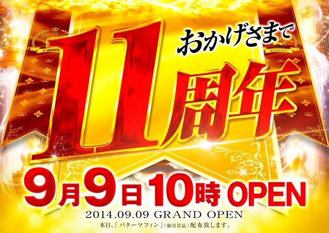 9月9日(火)11周年ッ❗全館10時開店ッ❗