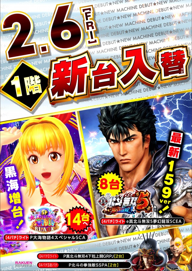 2月6日(金)新台入替初日❗全館10時開店ッ❗