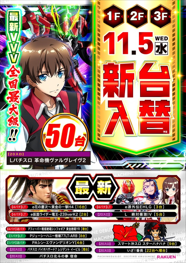 11月5日(水)新台入替初日❗全館10時開店ッ❗