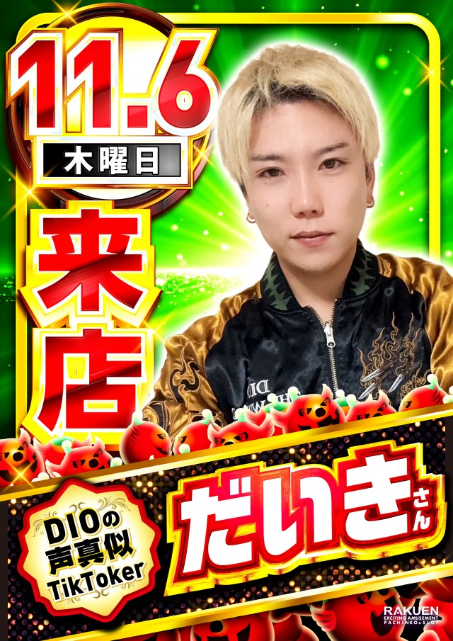 11月6日(木)楽園大宮店❗一部圧縮営業ッ❗