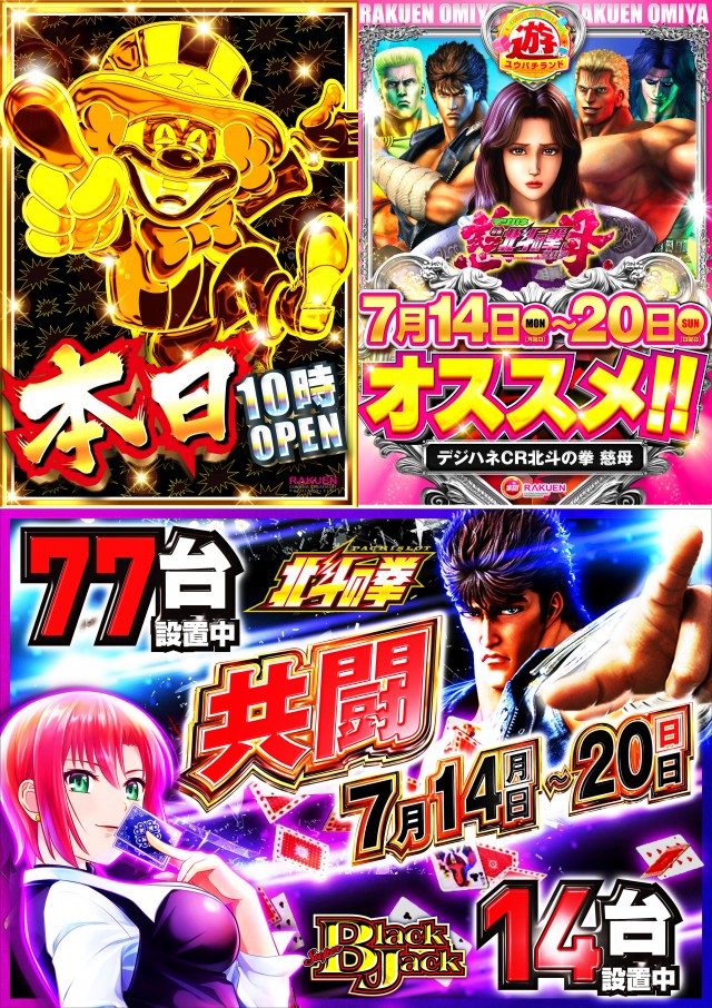 7月13日(日)楽園大宮店ッ❗全館10時開店ッ❗
