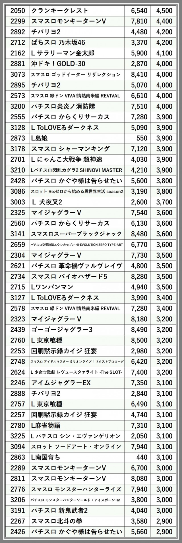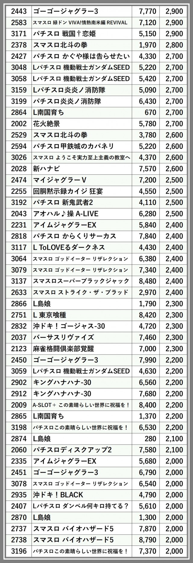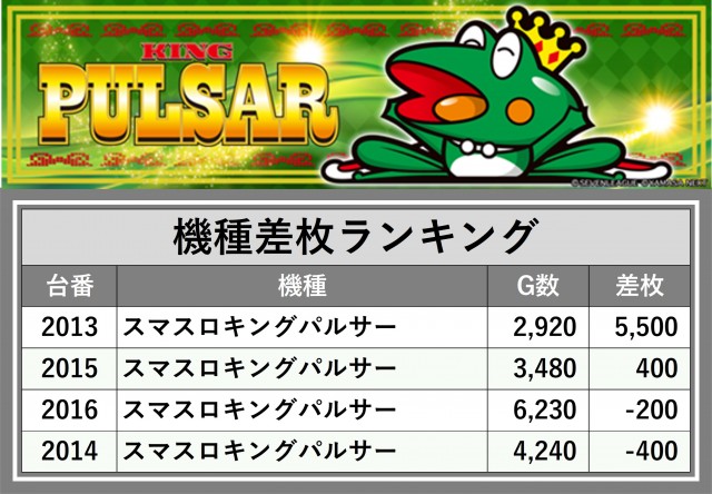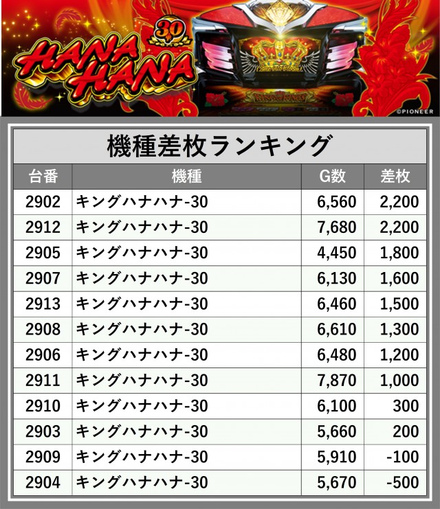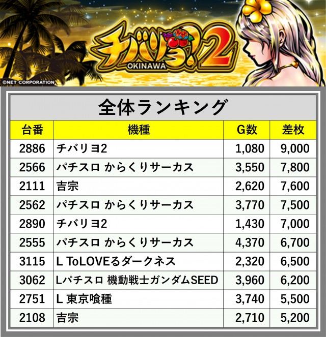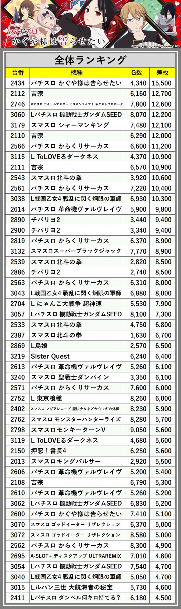 ※差枚数順に掲載しています