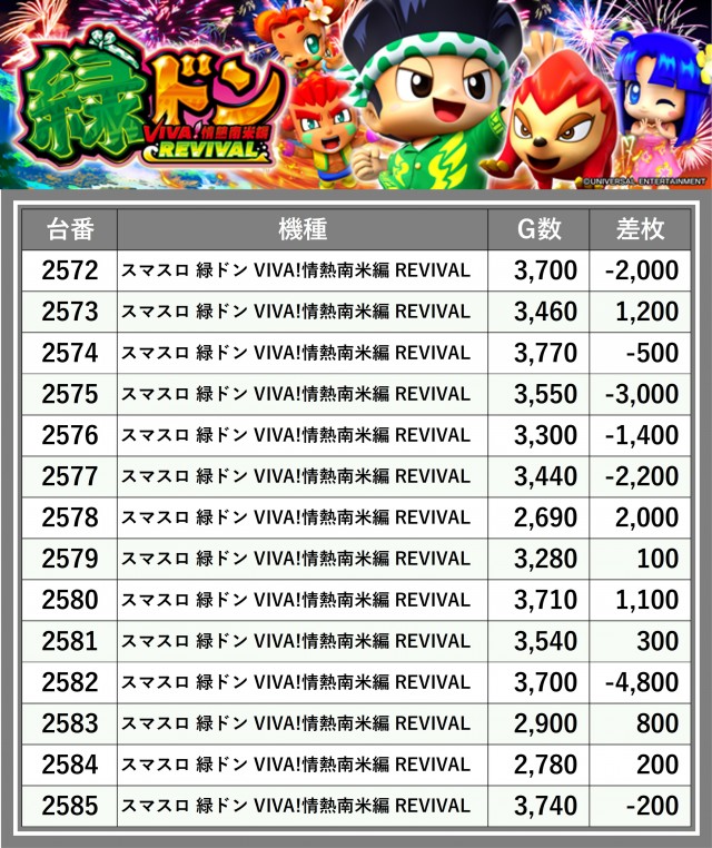 ※台番順に掲載しています