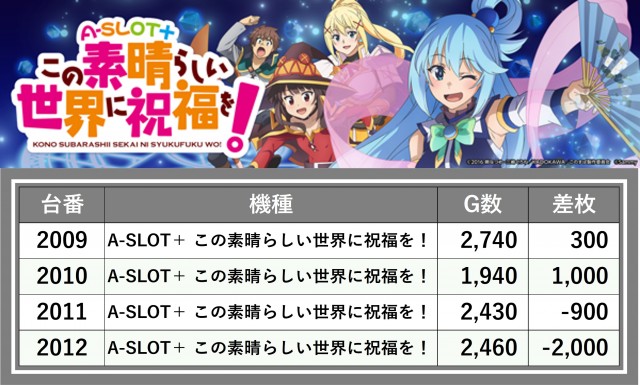厳選された取材対象機種をはじめ、その他スロット全体から好記録が飛び出した!プレイヤーが楽しんだ1日を下記データにて振り返ってみて欲しい。
