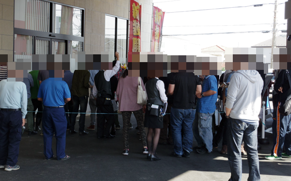 取材日の並びは抽選を受けたプレイヤーが約50名、開店直前に来た一般入場も合わせると100名以上が集まっていた。