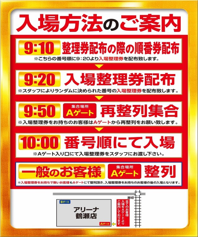 入場順番整理券をお求めのお客様は9時40分までにご来店下さい。 |