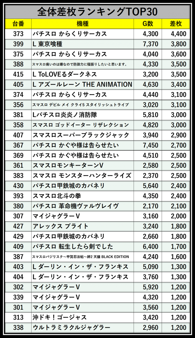 その結果の中から、ぱちタウンが注目すべきポイントを厳選してユーザーにお届け!プレイヤーが楽しんだ一日を下記データにて振り返ってみて欲しい。
