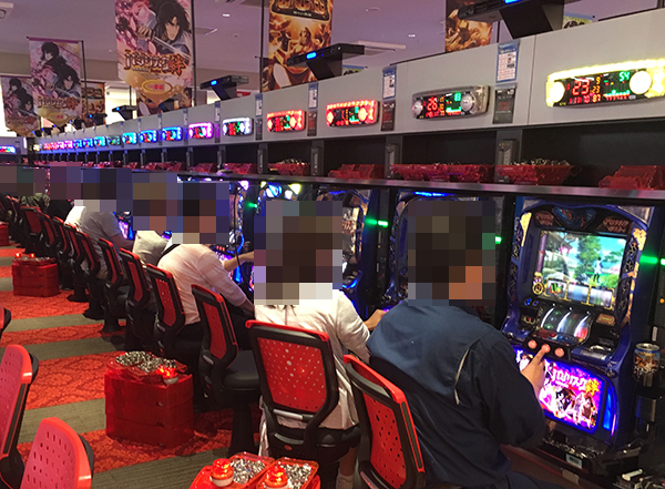 16時半を過ぎたころのホール内では、20円パチスロの「バジリスク~甲賀忍法帖~絆」の存在感が際立って大きく、満足度の高さも伝わってくるほどに盛況となっていた。