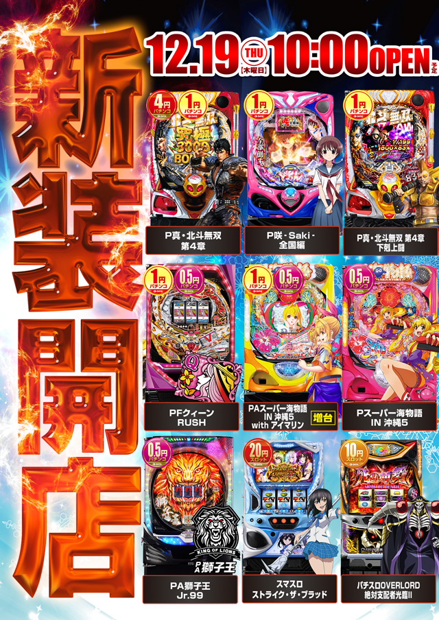 12月19日(木)新装開店!!あさ10時開店!(予定)