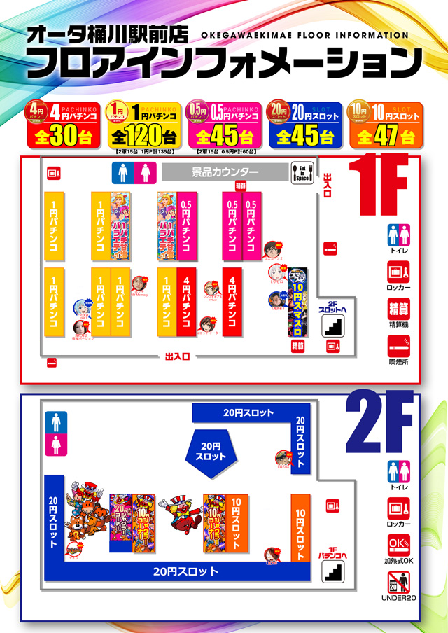 [パチ] 4円:30台 100円/90玉:135台 0.55円:45台 計210台 |