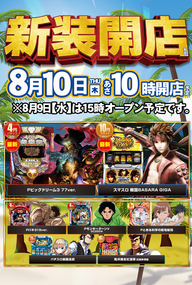 本日8月10日(木)新装初日!!10円S戦国BASARA !