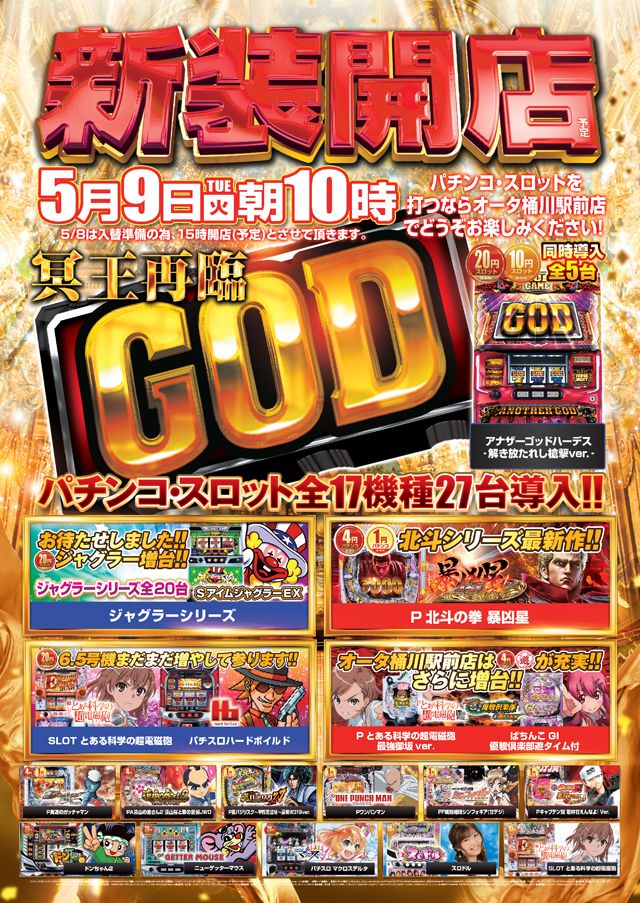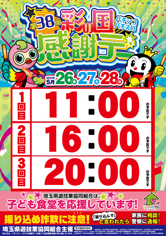 彩の国 パチンコ・パチスロ感謝デー 開催! 朝10時開店!