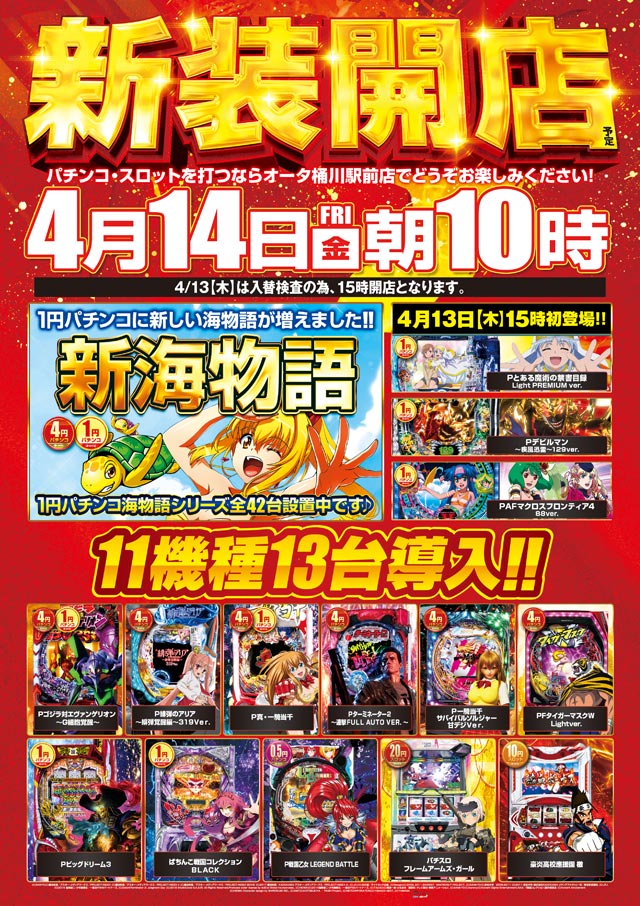 本日 4月13日(木)は、入替準備の為15時オープン!