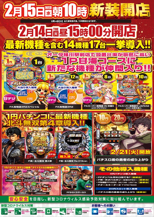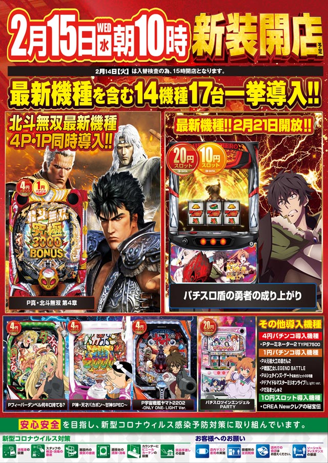 2月15日(水)新装開店!! 朝10時開店!