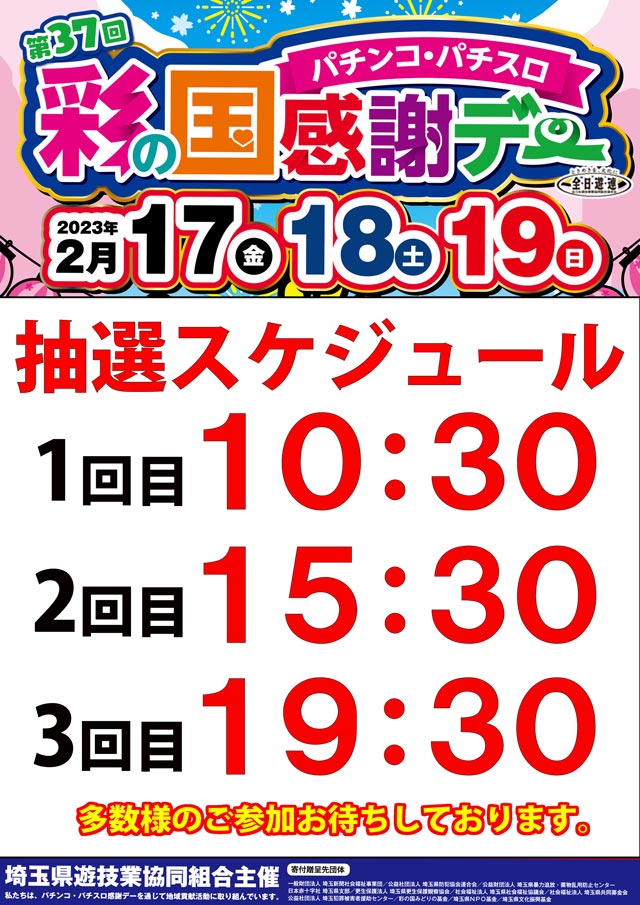 彩の国 パチンコ・パチスロ感謝デー 開催! 朝10時開店!