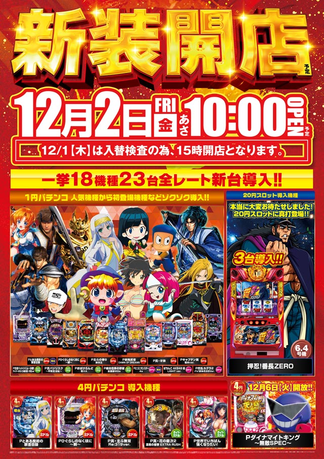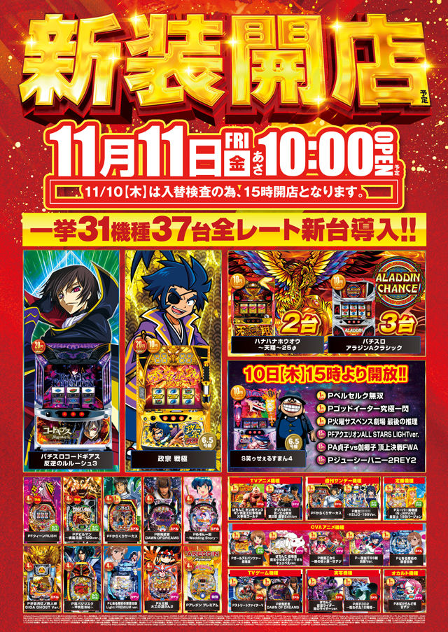 11月24日(木)明日あさ10時開店! 新台多数導入済み!!