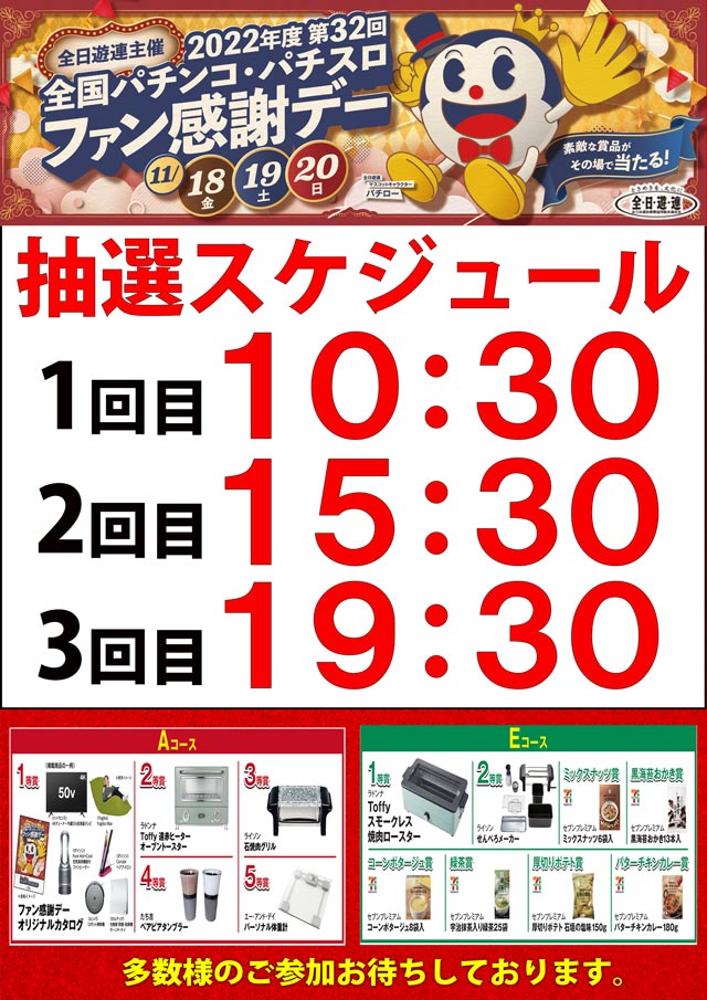 11月19日(土)パチンコ・パチスロ ファン感謝デー開催!!