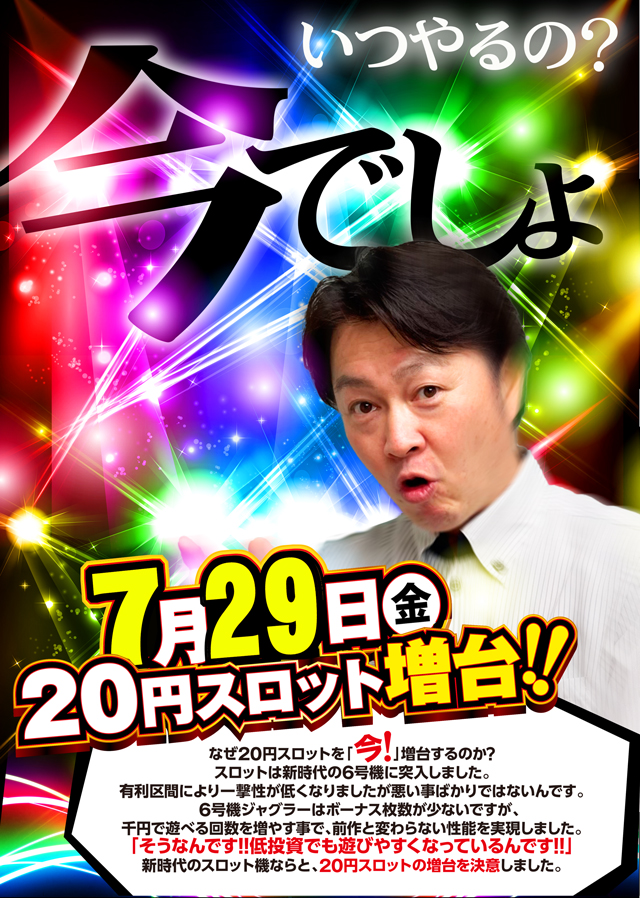 7月29日(金)リニューアルオープン 20円スロット増台!