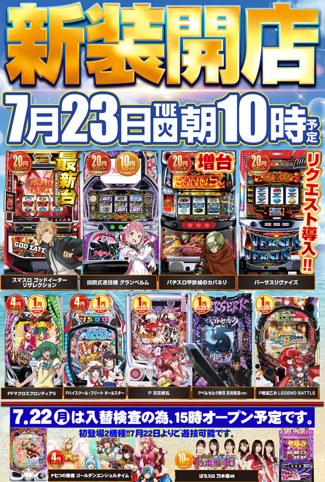 7月23日(火)新装開店!!あさ10時開店!(予定)
