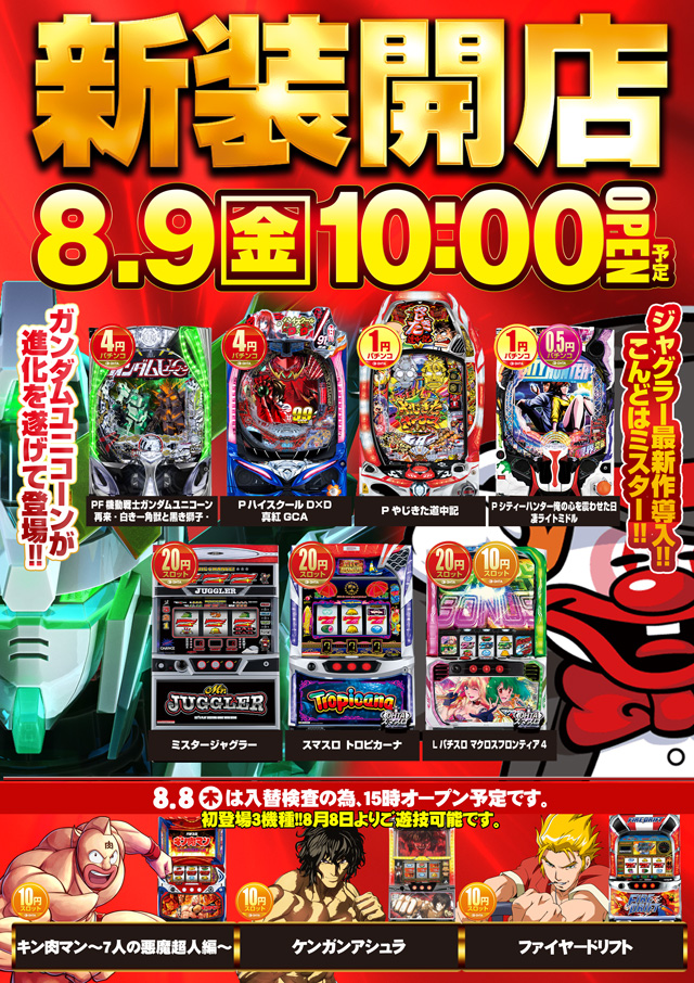 8月9日(金)新装開店!!あさ10時開店!(予定)