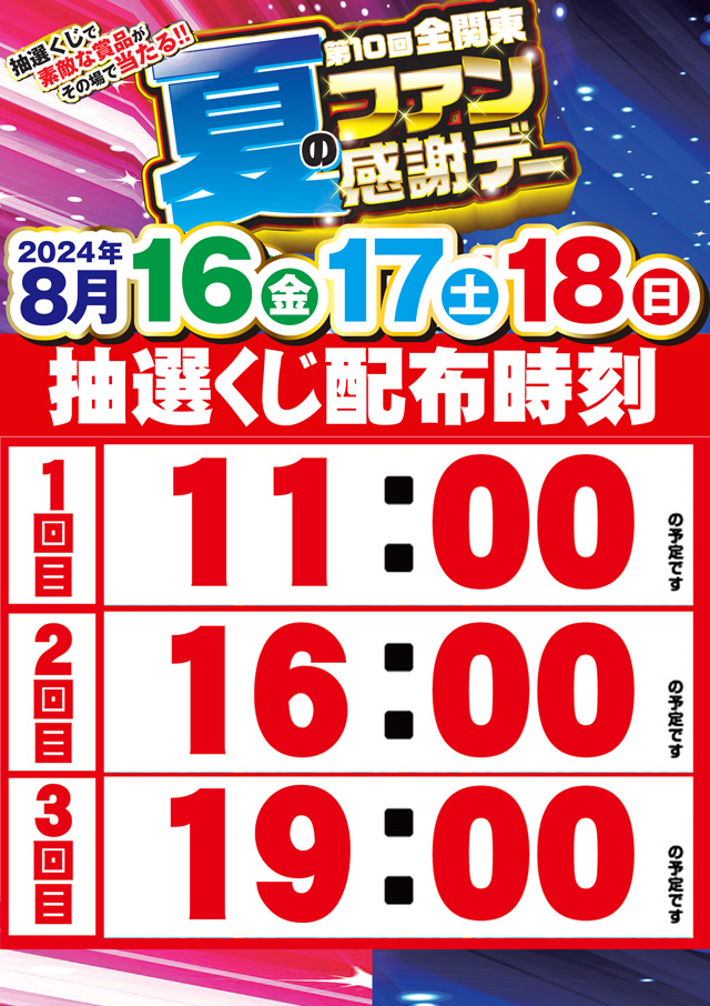 8月16日(金)ファン感謝デー開催!あさ10時開店!