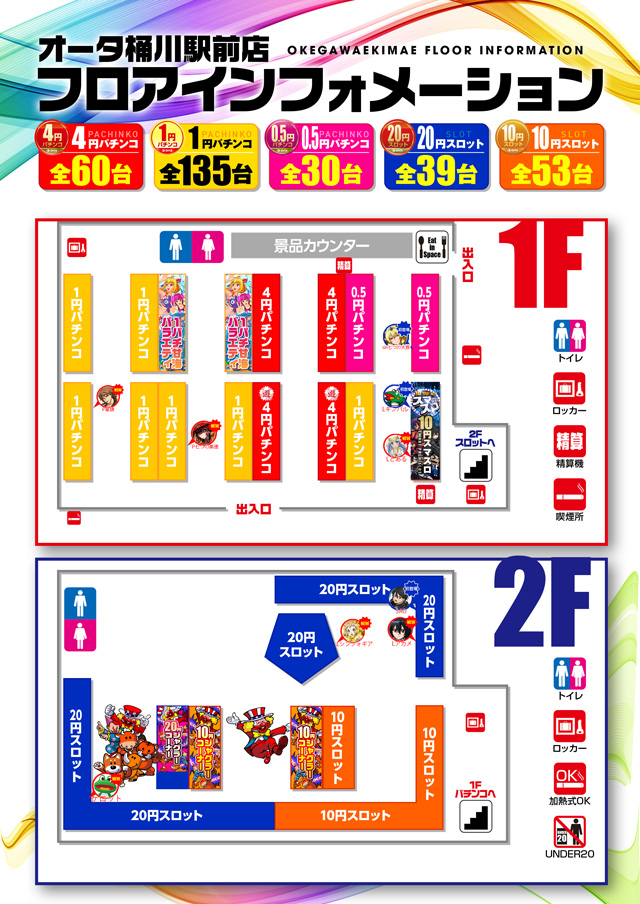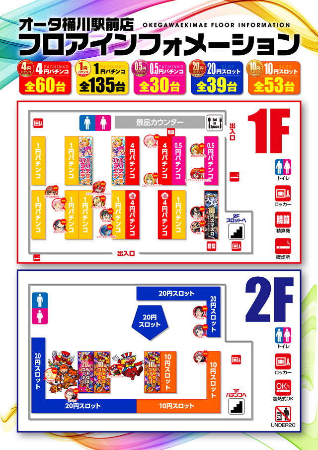 [パチ] 4円:30台 100円/90玉:135台 0.55円:45台 計210台 |